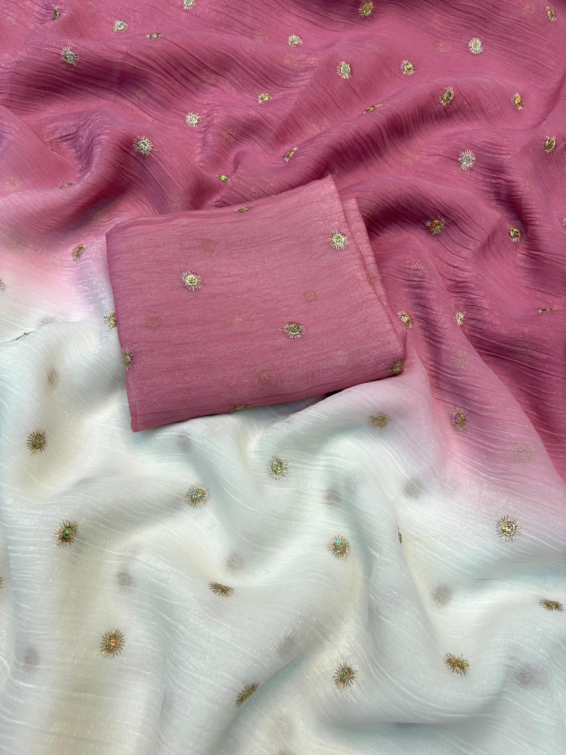 Party wear shaded fabric with trending color and small beautiful sequence butti all over on saree