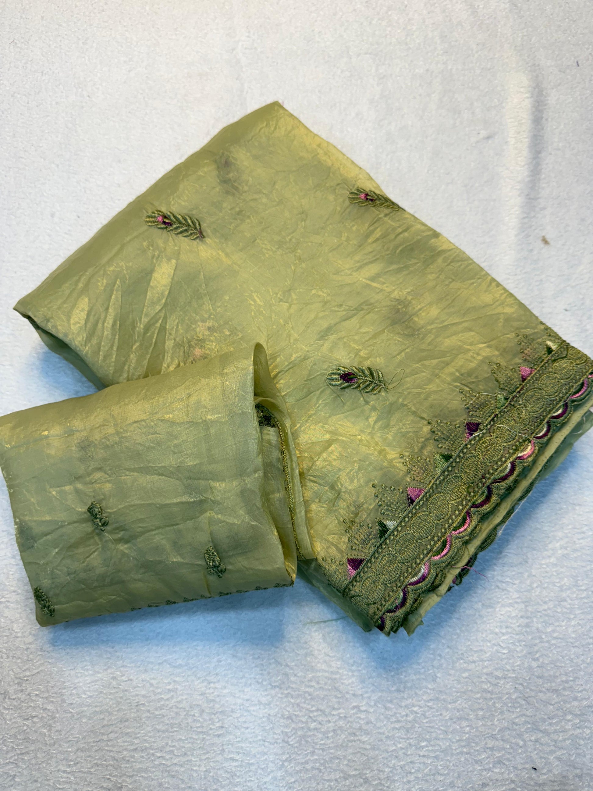 Soft Gold Crush Fabric Saree With Fancy Thread ๐งต Embroderiy Work & Fancy Embroderiy Work Blouse ๐!
